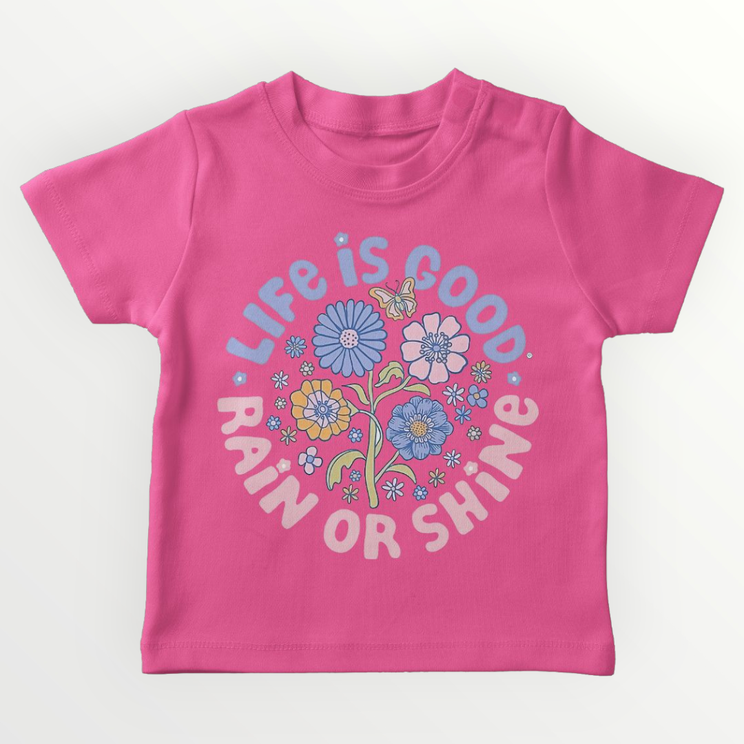 Life Is Good With Rain Or Shine Printed T-Shirt For Girls